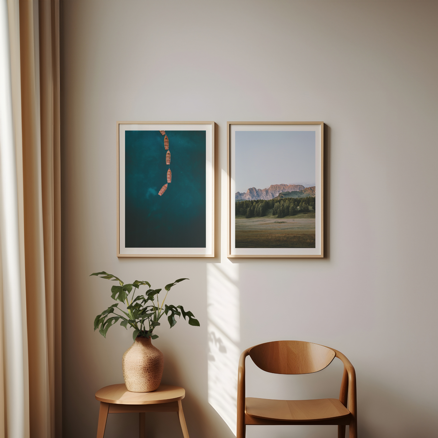 Montagnes, conifères et grandes étendues sont à l'honneur dans cette collection d'affiches qui invite au calme et à la contemplation. Des paysages magiques, chez vous.